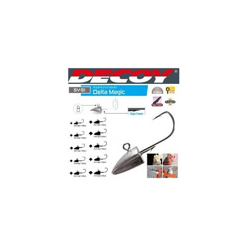 La Delta Magic SV-51 della Decoy è una testina piombata studiata appositamente per il Light Game e il rock fishing. Grazie alla particolare forma a "piramide" dona all'esca un movimento a zig-zag molto adescante. presenta inoltre un comodo fermaesca in acciaio.