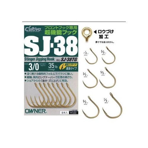 Il Stinger Jigging Hook SJ-38 della Owner è un amo da Vertical Jigging con occhiello saldato. Pronto per la preparazione dell'assit hook anche per quei pescatori che usano il kevlar. Ottimo anche per la traina con il vivo.