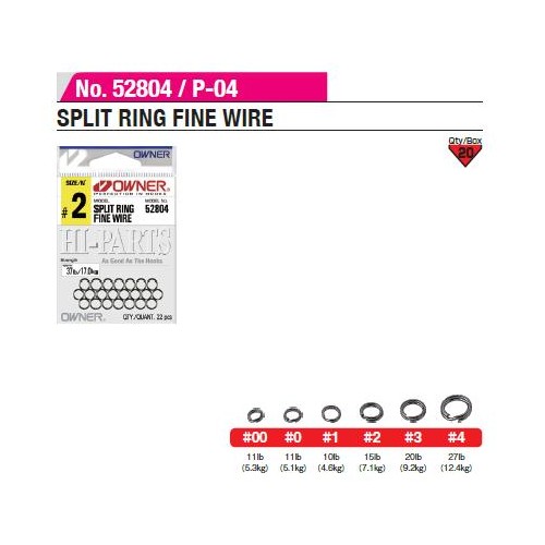 Gli Split Ring Fine Wire P-04 della Owner sono anellini spaccati molto sottili, ma allo stesso tempo resistenti, ideali per il montaggio su artificiali di piccola/media dimensione.
