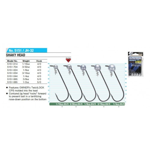 Bellissima testina da Shaky, con affilatissimo amo Owner. Disponibile in 4 pesi.