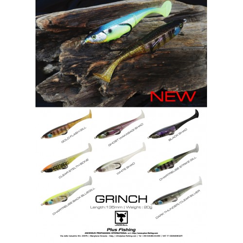 Grinch! Una novità di Jackall per le acque italiane! Si tratta di uno shad topwater con sistema di allamata a pressione e doppio amo rivolto verso l'alto. Un sistema di questo tipo permette di pescare davvero dentro e sopra l'impossibile, pur restando sempre in pesca.