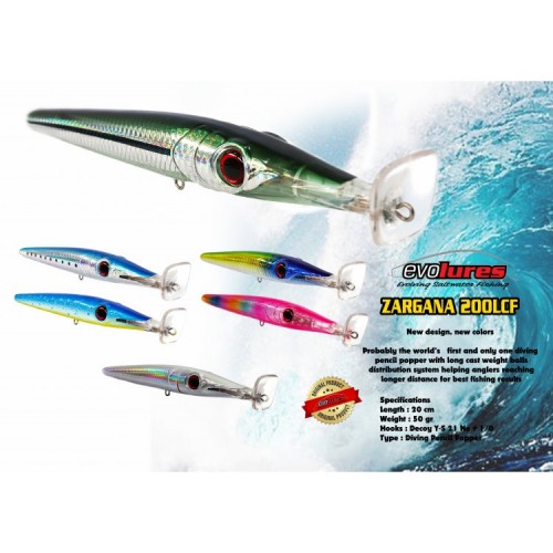 Il nuovo Zargana 200LFL oltre ad essere più lungo, 200 mm contro i 150 mm del fratello minore presenta al suo interno un sistema di spostamento del baricentro che concentra il peso sulla coda durante il lancio per equilibrare l’artificiale durante il lancio.