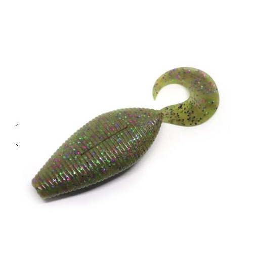 Soft bait dalla silhouette piatta che imita il bluegill, coda a grub per aumentare le vibrazioni in acqua . Perfetto per essere montato in texas o spiombato.
