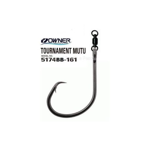 Il Tournament Mutu 5174BB-161 è fornito di girella con cuscinetti, progettato per presentare esche in modo naturale per pesci di grandi dimensioni. La punta è in linea con il fusto dell'amo ed è inclinato di 90°. Realizzato in acciaio ad alto tenore di carbonio in modo che si "arrugginisca" se lasciato in bocca al pesce. Conforme a tutte le normative sulla pesca sportiva.