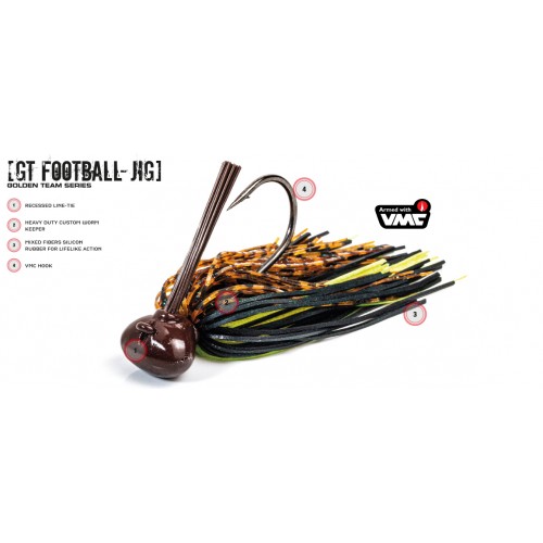 Il GT Football-Jig è un classico Jig è ricco di dettagli, come lo skirt mixato con filamenti di finesse rubber e fine silicon per renderlo ultra naturale in tutte le fasi del nuoto e stop. Il worm keeper ha un doppio gancio in acciaio inox, che fissa e mantiene l’esca in modo saldo e sicuro al jig anche dopo usi intensivi.