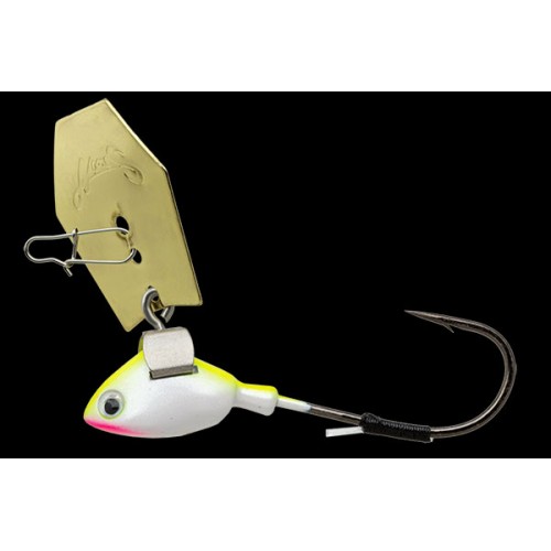 Una chatterbait molto ricercata sul mercato, entra in azione anche a velocità molto basse, e nella versione qui proposta, da 12 grammi è perfetta in acque di media profondità. Questa versione è proposta senza skirt, ed è ideale per innescare shad o grubs. interessante anche per la spigola.
