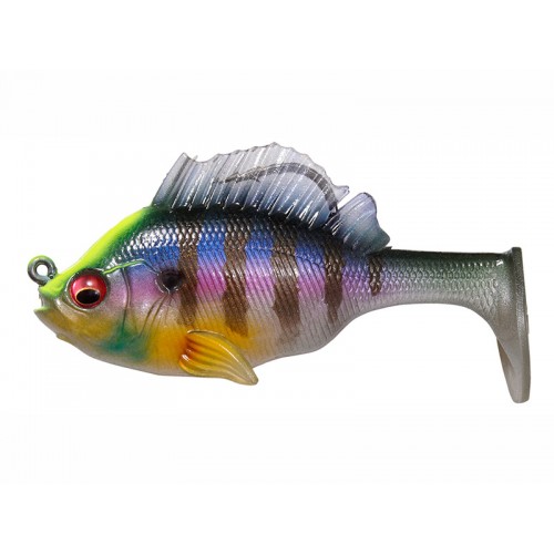 Un'ottima soft swimbait con amo antialga sul dorso nascosto tra due pinne dorsali. Imita alla perfezione un persico sole.