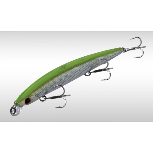 Jerkbait galleggiante di 125mm adatto per la pesca shallow in spiaggia, scogliera e aree portuali dove insidiare spigole, serra e pelagici.