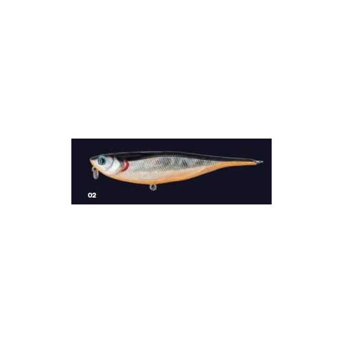 Esca da spinning topwater con un profilo asimmetrico, progettata per predatori di superficie. È caratterizzata da un'azione di sliding ampia e fluida grazie alla coda slim, un bilanciamento interno ottimale.