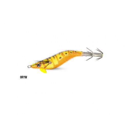 La tecnologia Rubber Cloth, applicata alle totanare Jatsui Jumpers. La colorazione Prawn è caratterizzata dalle livree che richiamano le livree dei gamberi, replicandole sia in maniera naturale che con la concessione di licenze artistiche, al fine di creare i contrasti di colore che risultano sempre vincenti nelle nostre acque.