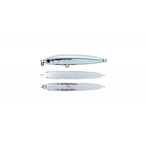 Piccola stickbait sinking per la pesca ai pelagici, da utilizzare sia da barca sulle mangianze che da riva a shore jigging. Si lancia molto distante grazie al suo peso elevato e mantiene un'azione attrattiva anche su recuperi sostenuti. Il suo range di azione va dalla superficie ai 5-10 metri di profondità. Ideale per la pesca all'alletterato. Armato con ancorette BKK.